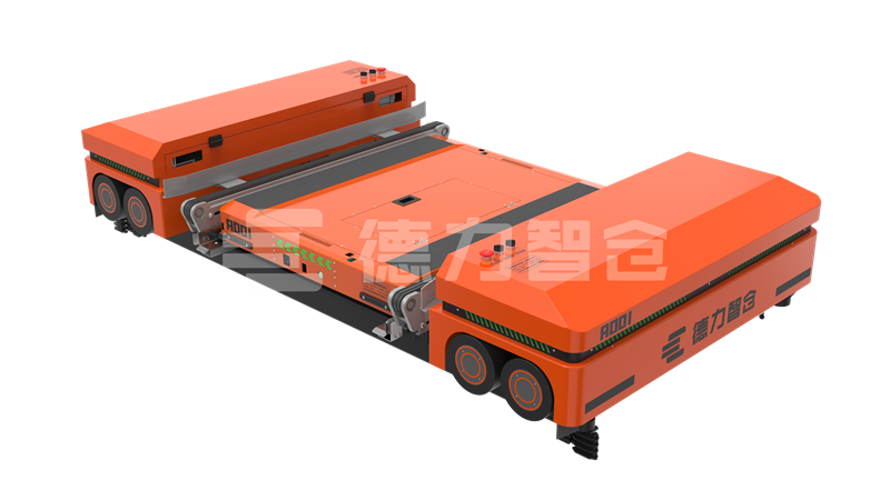 1.子母车可分离作业:母车牵引子车在仓库的主干道行驶,当到达某一个特定巷道的时候,子车可以自动释放,自主运行到巷道上面作业,母车可继续执行其他作业。